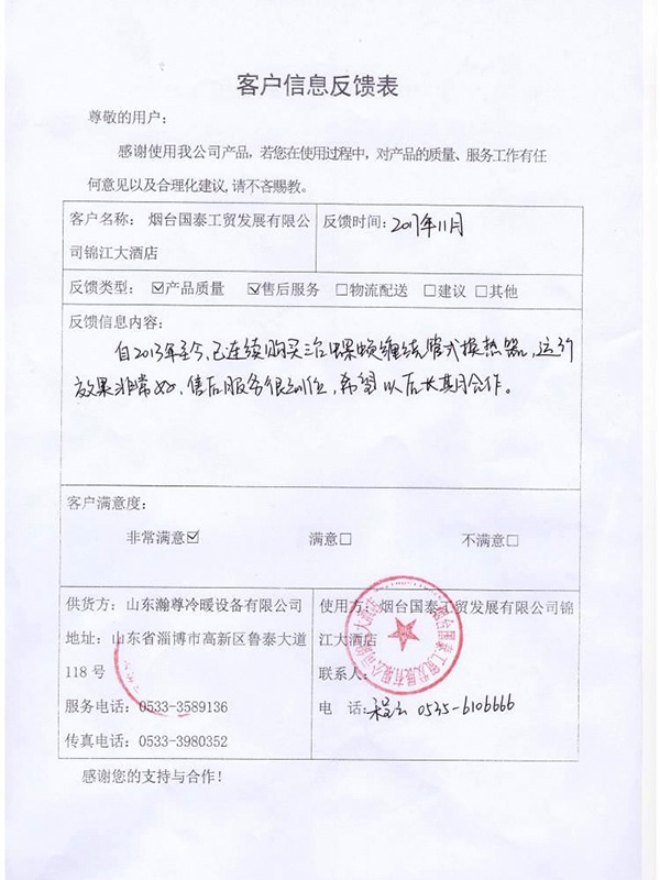 • 山東瀚尊冷暖設備有限公司坐落在美麗的齊國古都---淄博,是一家以換熱(冷凝)產品研發、生產、營銷為一體的企業;自2008年以來,通過與中外知名熱力設備制造商合作以及自主探索和創新,于2010年成功研制生產出了公司第一臺螺旋纏繞管式換熱器;同時,公司依托自身強大的技術力量和研發能力,于2016年成功研制生產無死角無菌級雙管板式換熱器,近年來,公司努力走在中國換熱器行業的前列,致力于創造民族品牌,為用戶提供專業技術支持與服務......